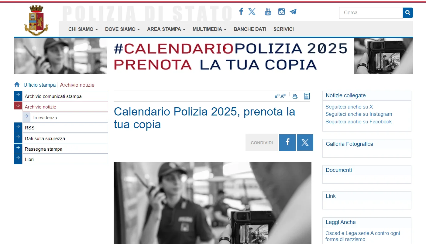 Calendário Policial Italiano 2025: Experimente a dedicação do serviço público com fotos impactantes e apoie projetos solidários.