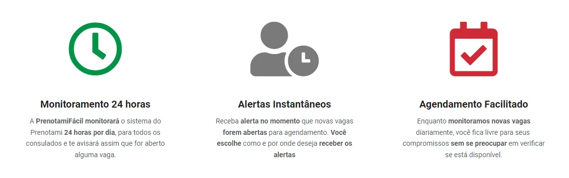 • Acesso Prioritário: Com milhares de pessoas tentando agendar compromissos a qualquer momento, pode ser difícil conseguir uma vaga. No entanto, ao utilizar o Bot de Monitoramento, você terá acesso prioritário às oportunidades de agendamento, aumentando suas chances de sucesso.