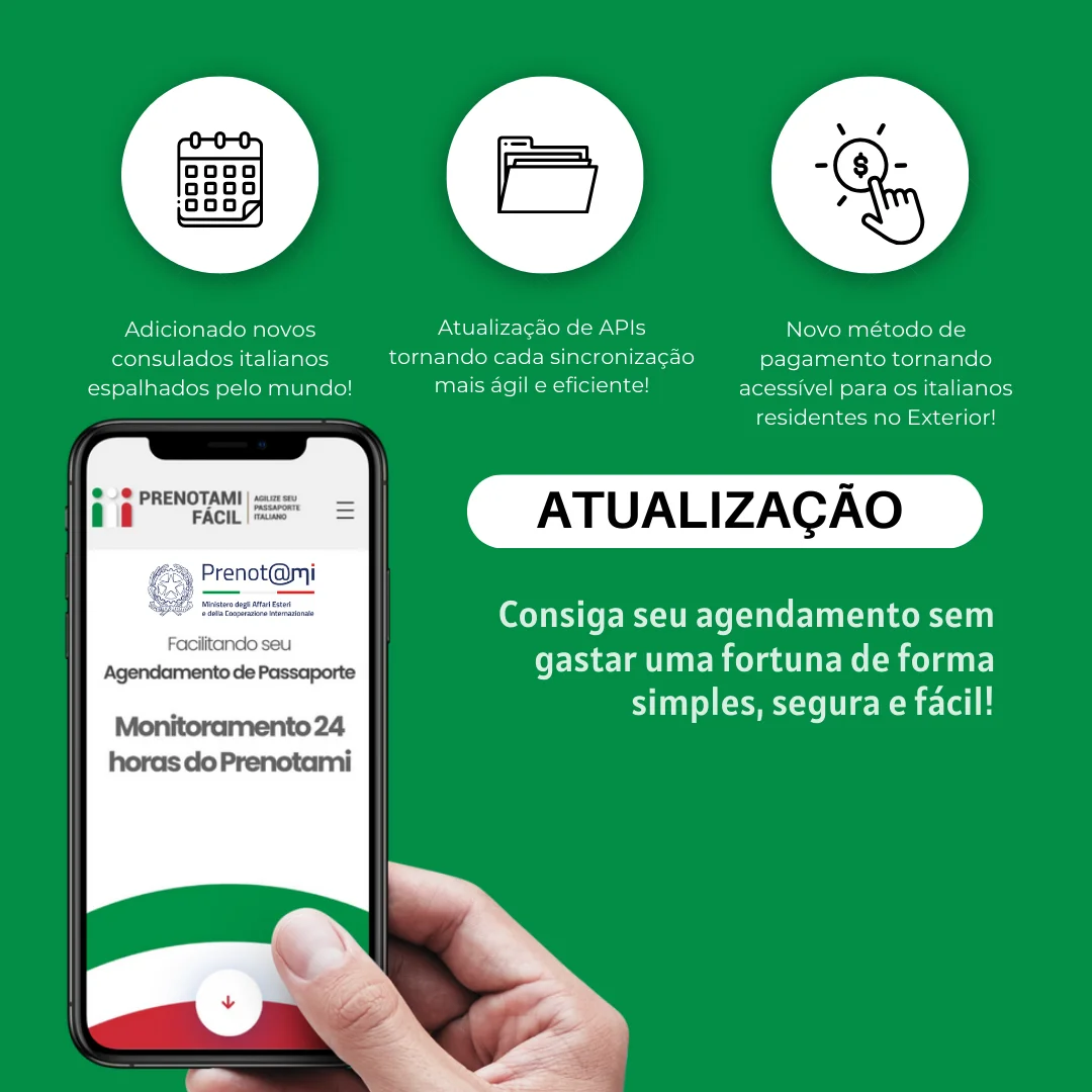 Estamos empolgados em anunciar que nosso sistema de monitoramento PrenotamiFácil está expandindo! Agora, além do Brasil (América do Sul), nossos serviços também estarão disponíveis em consulados italianos na Europa, América do Norte e Oceania. Com o intuito de proporcionar uma experiência ainda mais eficiente e conveniente para nossa comunidade, implementamos diversas novidades nos planos PrenotamiFácil. Fique por dentro dessas atualizações e aproveite os benefícios aprimorados que preparamos para você!